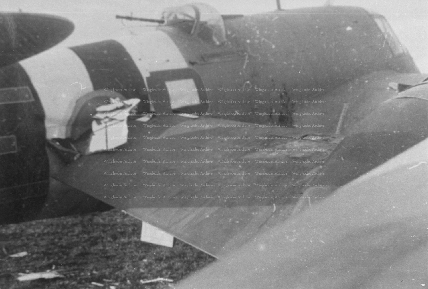 Beaufighter TF X NV191, EE-R, 404 Sqn, October 1944 after being 'stabbed' by an Airspeed Oxford! The Oxford's wing went right through the Beaufighter's fuselage, see the accompanying photo!