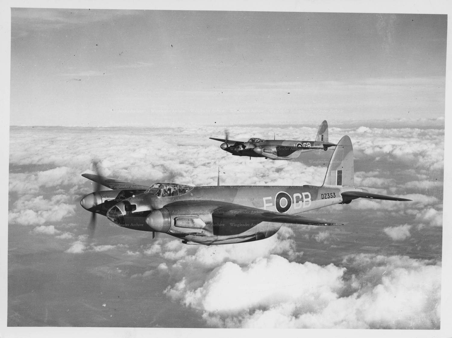 Just a lovely photo of Mosquitos in low winter light! DZ353 GB-E and DZ367 GB-J of 105 Sqn taken in December 1942